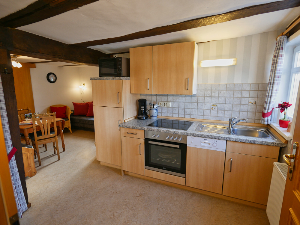 Die Ferienwohnung Meise ist unser kleinstes Appartement und bietet auf 31 m² Platz für Paare oder Familien mit einem kleinen Kind. Das alte Eichengebälk verleiht den Räumen eine besonders rustikale Note, worin ihr euch als Gast mehr als nur wohlfühlen könnt.